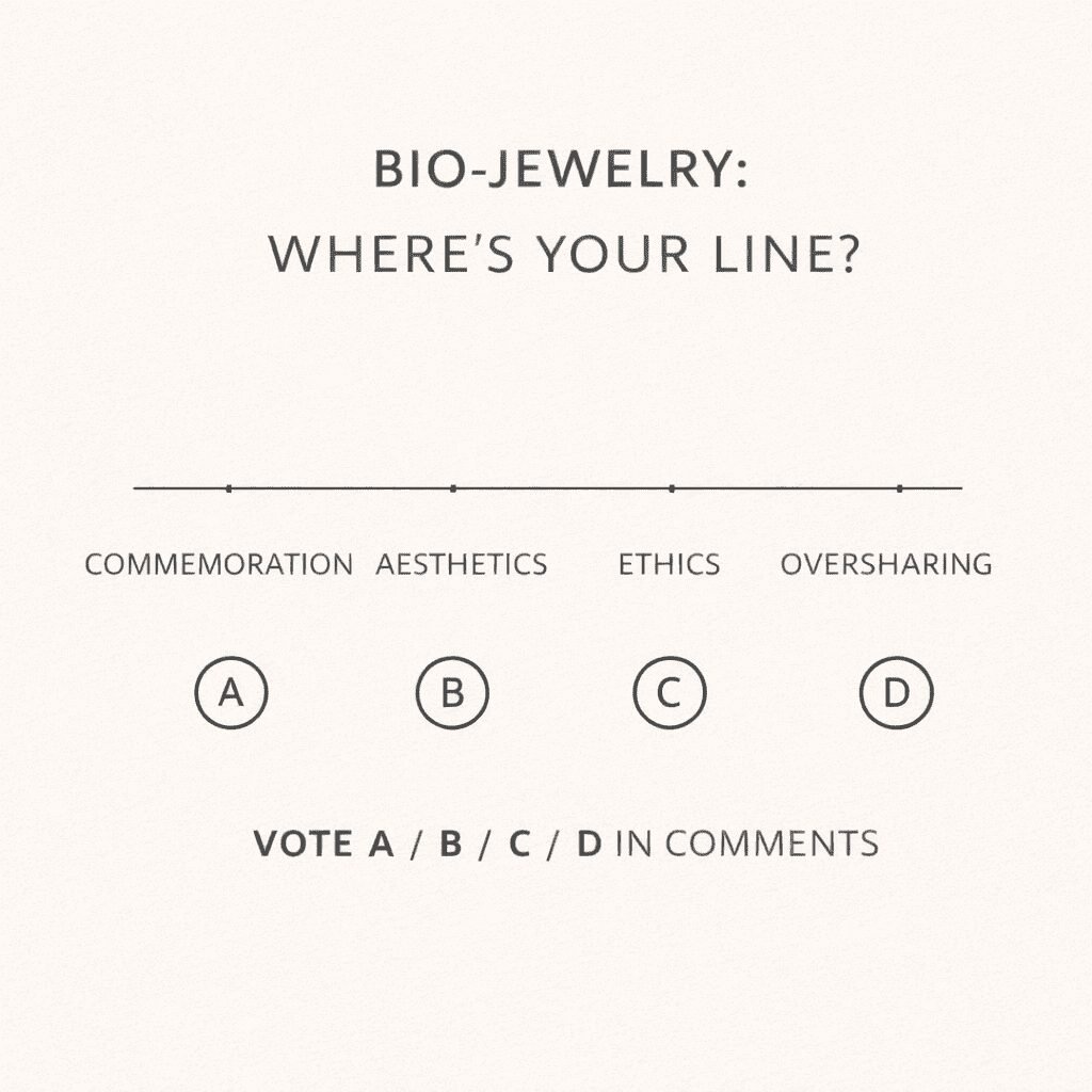 Bio-jewelry is the natural offspring of two very human impulses: to hold on, and to make meaning. The modern twist is that we’re doing it in public, and we’re doing it in an economy that monetizes attention. That’s why it feels fraught.