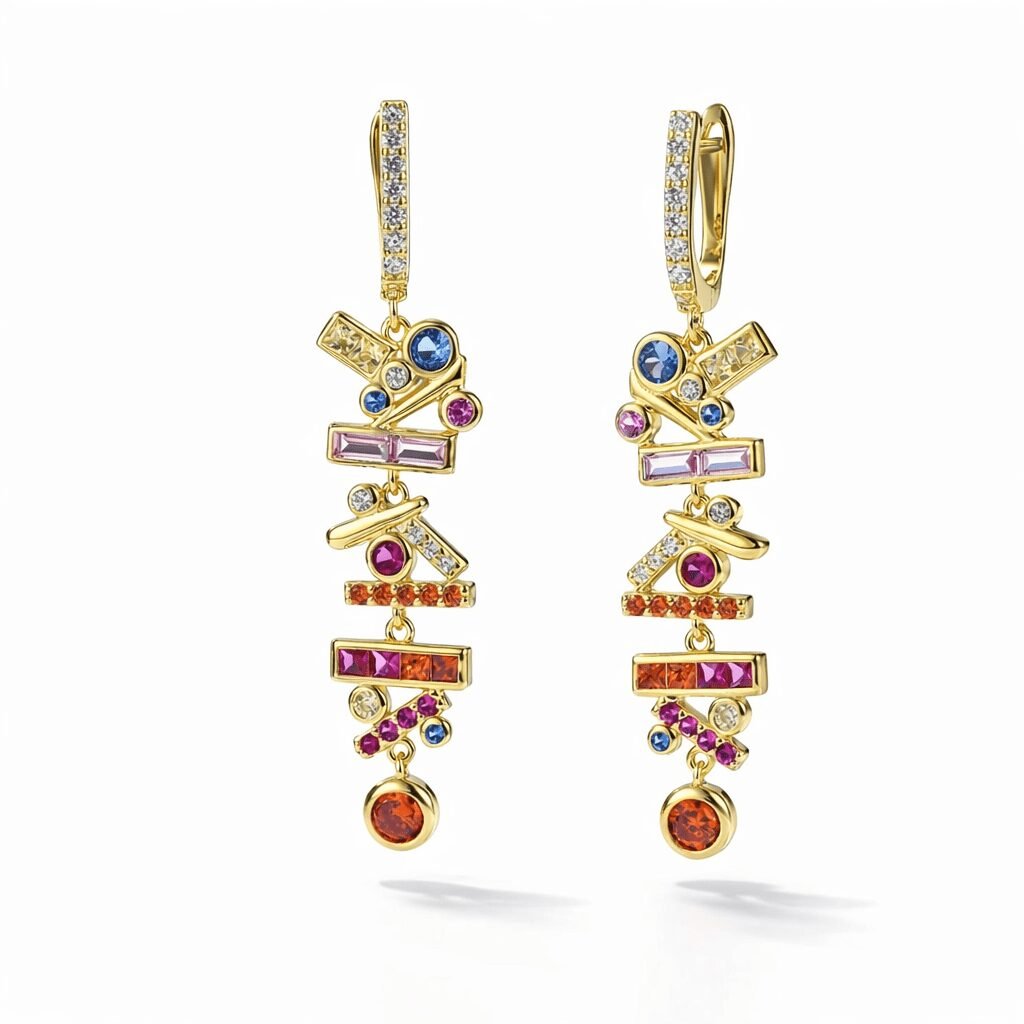 These earrings do more than complete an outfit—they create presence. The elongated line flatters the profile, the color brightens the complexion, and the movement adds a sense of confidence that feels effortless. When you want a statement without heaviness, gold drop earrings with multicolor stones offer the perfect balance: expressive, polished, and unmistakably modern.