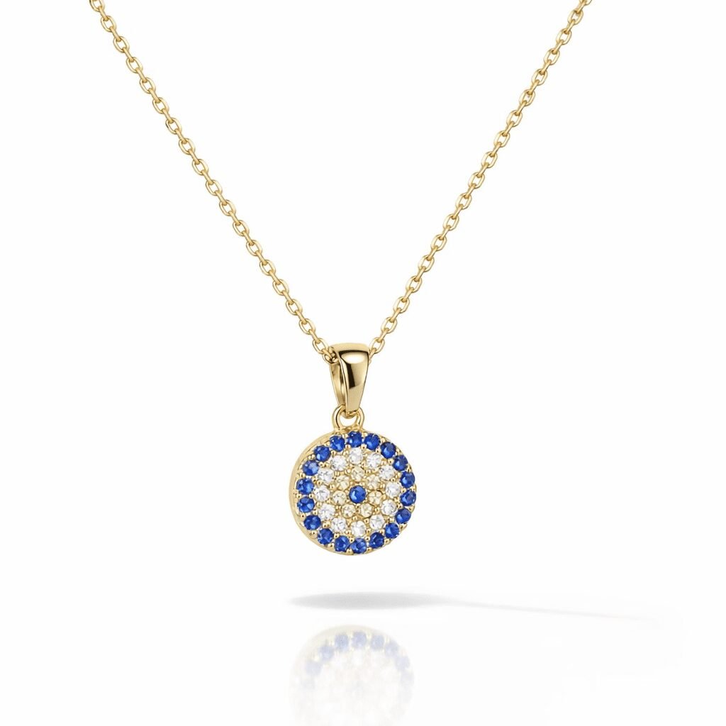 - Everyday polish: Wear the evil eye pendant necklace with a crisp white shirt and open collar—gold warmth and blue sparkle do the work for you.